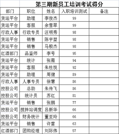 以下是此次培訓(xùn)人員的試卷分?jǐn)?shù)與講師評(píng)分表圖片: