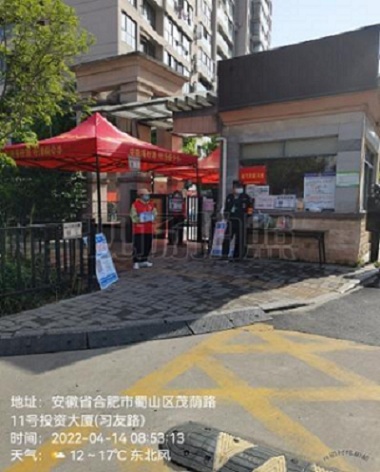 我司在2022年4月14日星期四分派兩位黃荊人在早8:00“國建香榭水都西南門”與早9:15“蜀山區(qū)凱旋門社區(qū)大象街商業(yè)體”兩地,進(jìn)行防疫工作。在此次防疫工作的建議:嚴(yán)格執(zhí)行兩碼通行、出入人員體溫檢測(cè)、督促快遞人員做好防護(hù)措施及居民/行人佩戴好口罩、針對(duì)中低風(fēng)險(xiǎn)區(qū)來肥人員進(jìn)行信息登記等,并耐心細(xì)致地向不配合的群眾做好解釋工作,安撫他們的情緒并重視疫情防護(hù)的重要性。