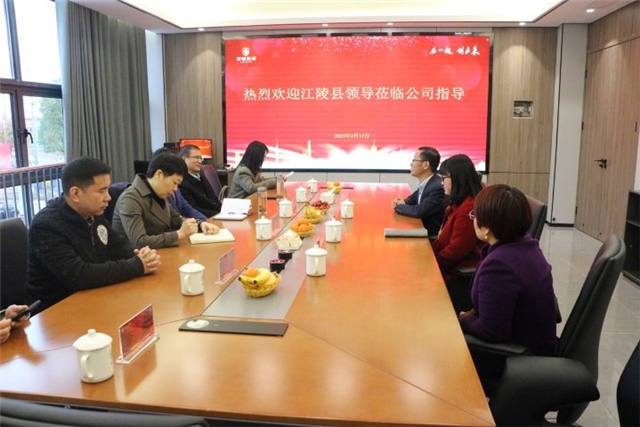 座談中,章總和倪部長首先代表公司對到訪的各位領導表示了誠摯的歡迎,感謝與會領導百忙之中蒞臨我公司指導工作。領導們首先細致了解了我公司的發展歷程,章總對我司當下智慧工廠的生產模式、固廢利用等方面做了相關介紹,并向大家現場展示了公司的ERP系統,趙文兵主任表示我司智慧工廠顛覆了傳統生產制造業的模式,其后大家觀看了我司宣傳片,同時,楊主任與我們分享了江陵的相關宣傳片:朝辭白帝彩云間,千里江陵一日還。我們也了解到江陵經濟發展的迅速,正建成綠色能源化工產業園,讓產業發展與綠色低碳聯姻,雙方對于綠色低碳環保進行深入探討。會議在友好而熱烈的氣氛中結束。